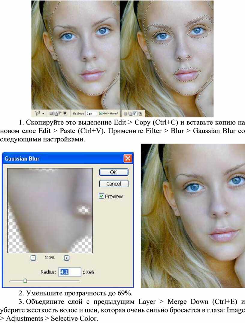 Мелкие пятна можно удалять также инструментом Blur (Размытие) .