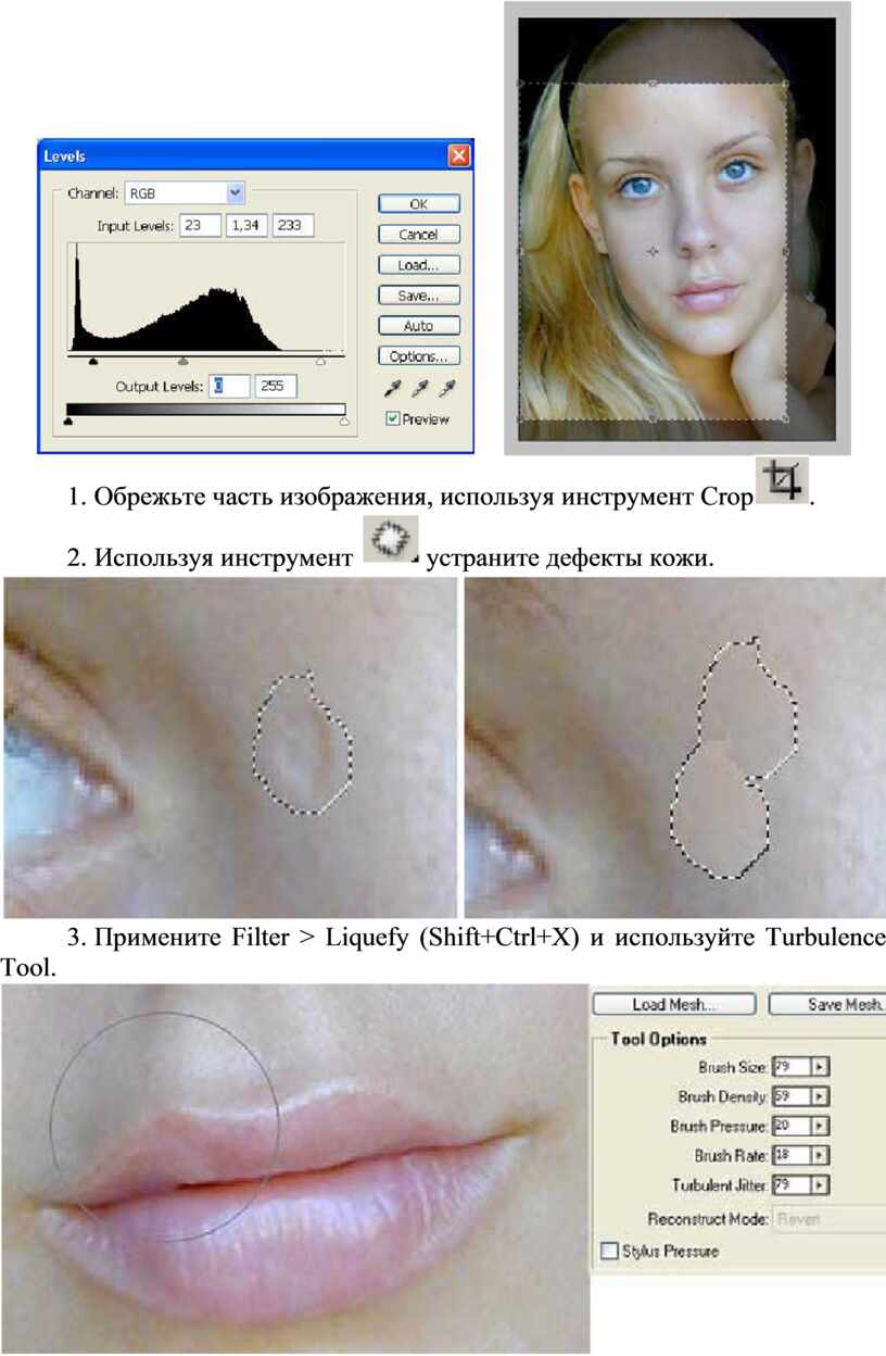 4. Используя все инструменты ретуширования, скорректируйте свою фотографию.