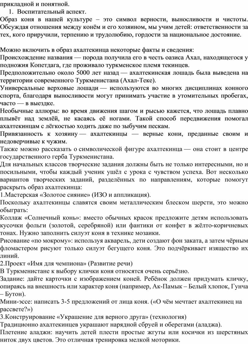 Образ ахалтекинского скакуна как средство воспитания и обучения в начальной школе.