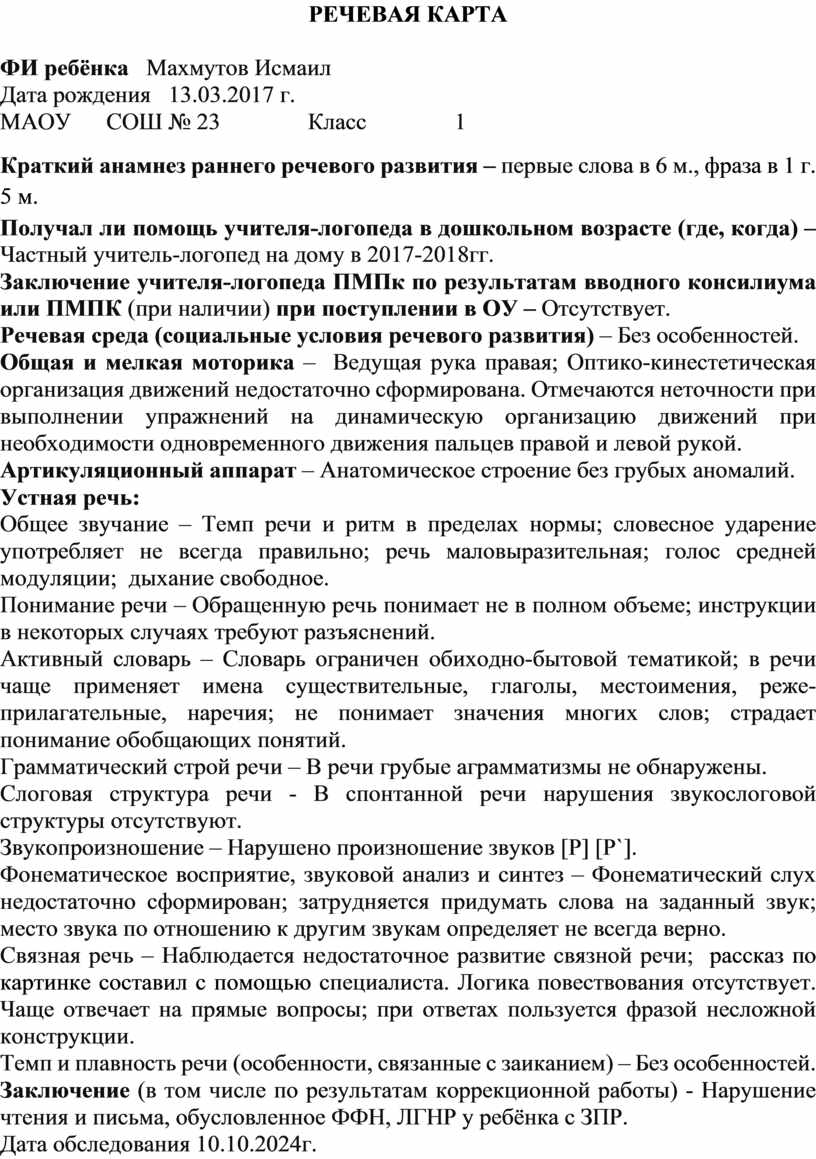 Получал ли помощь учителя-логопеда в дошкольном возрасте (где, когда) – Сведения отсутствуют.