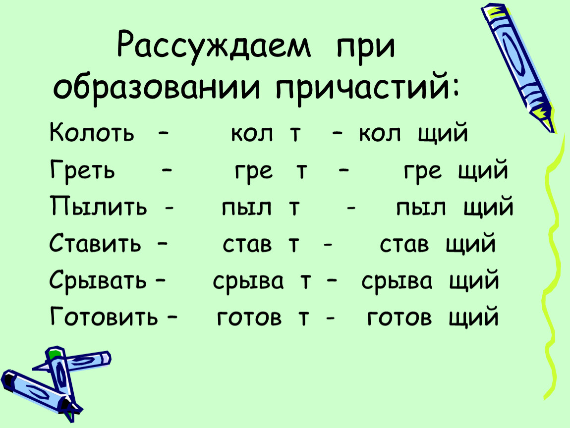 Рассуждаем при образовании причастий: