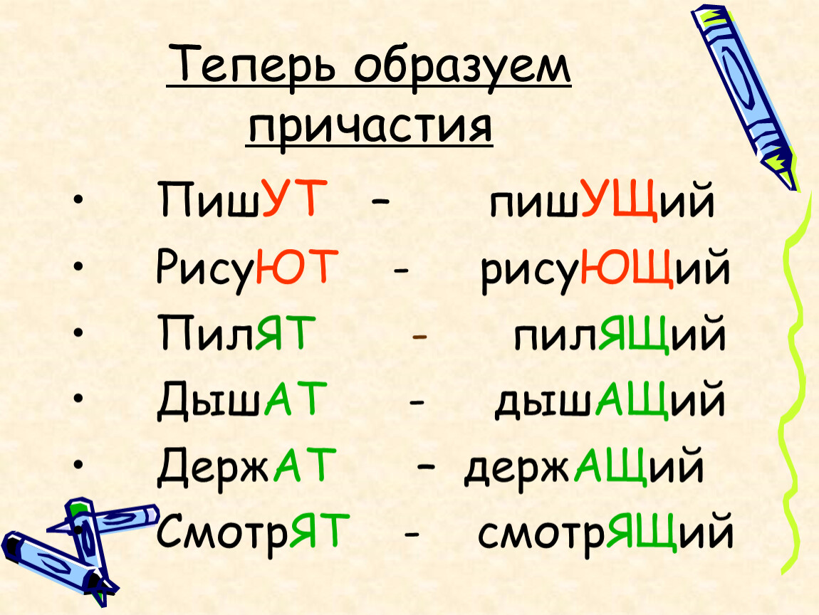 Теперь образуем причастия
