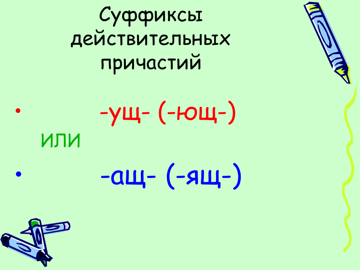 Научить использовать алгоритм образования действительных причастий.