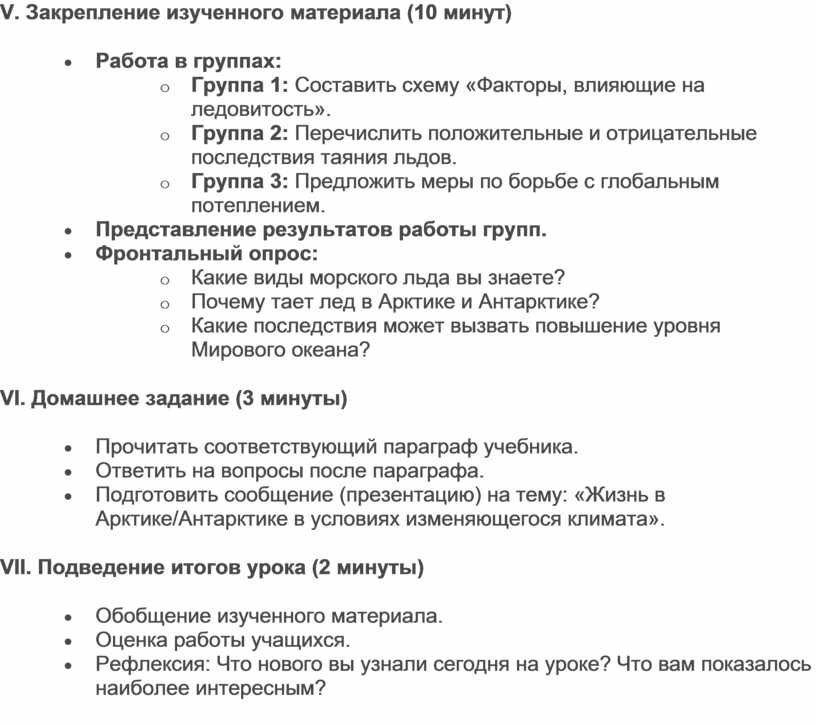 o Группа 2: Перечислить положительные и отрицательные последствия таяния льдов.