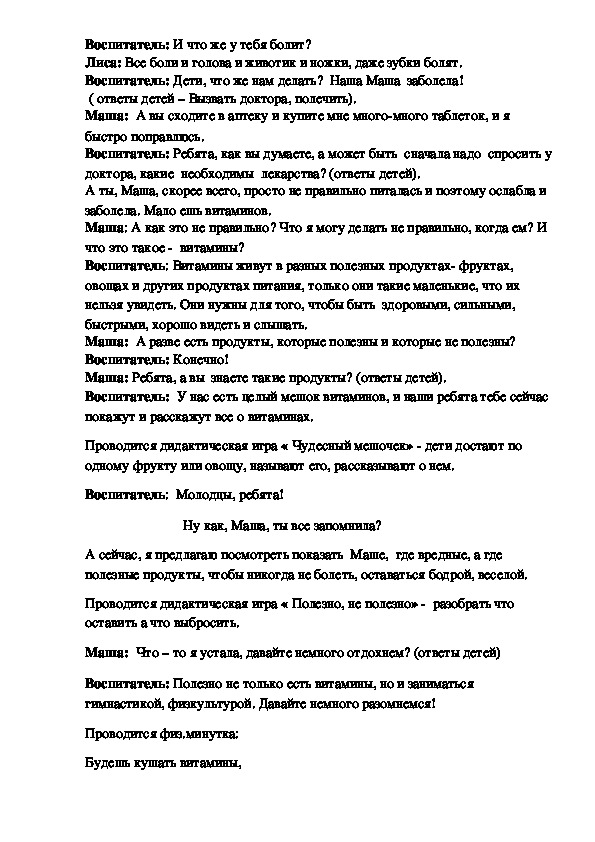 Воспитатель: Дети, что же нам делать? Наша Маша заболела!
