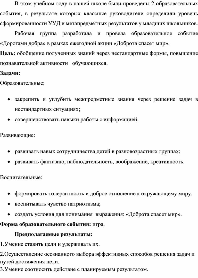 Образовательное событие «Дорогами добра»