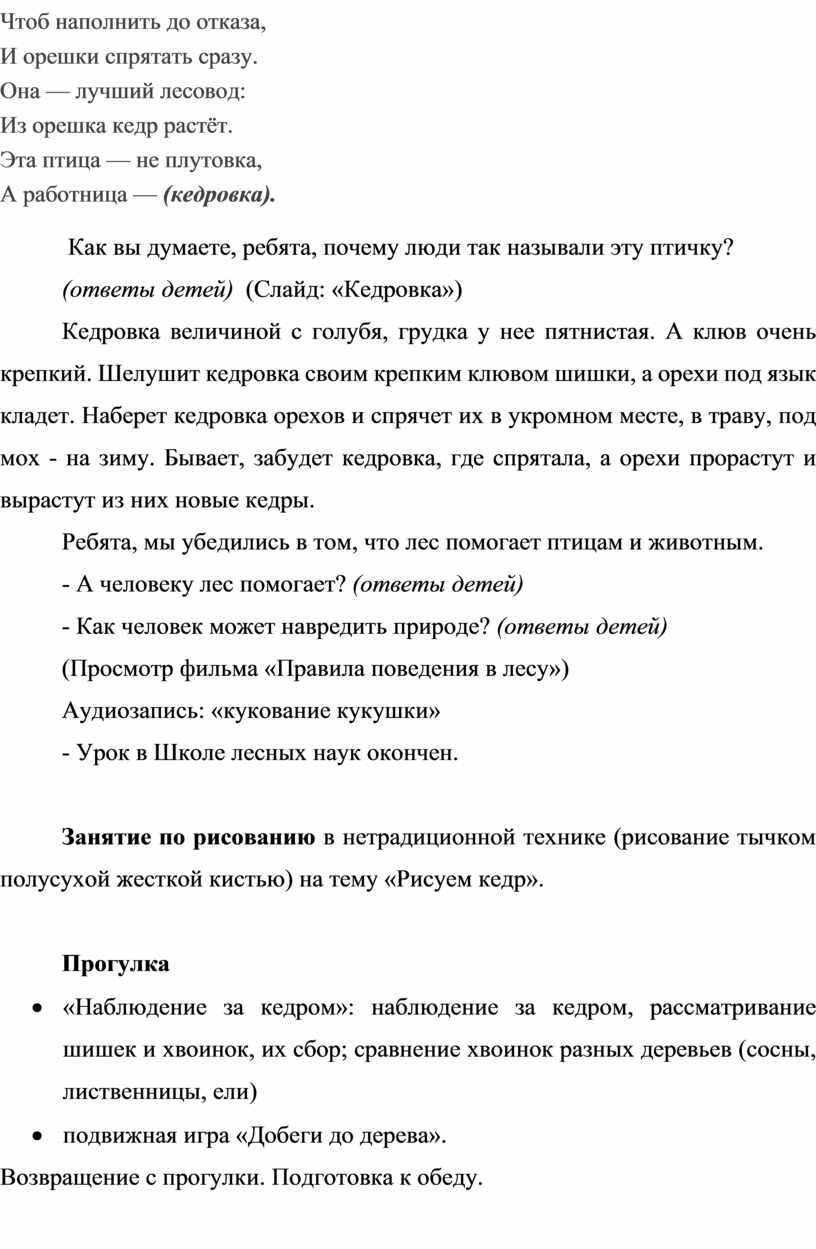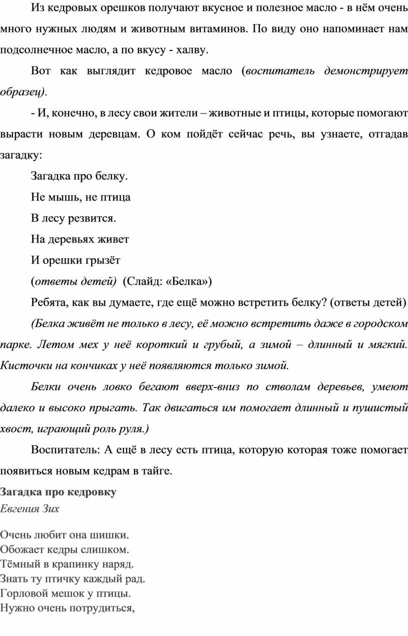 Воспитатель: А ещё в лесу есть птица, которую которая тоже помогает появиться новым кедрам в тайге.
