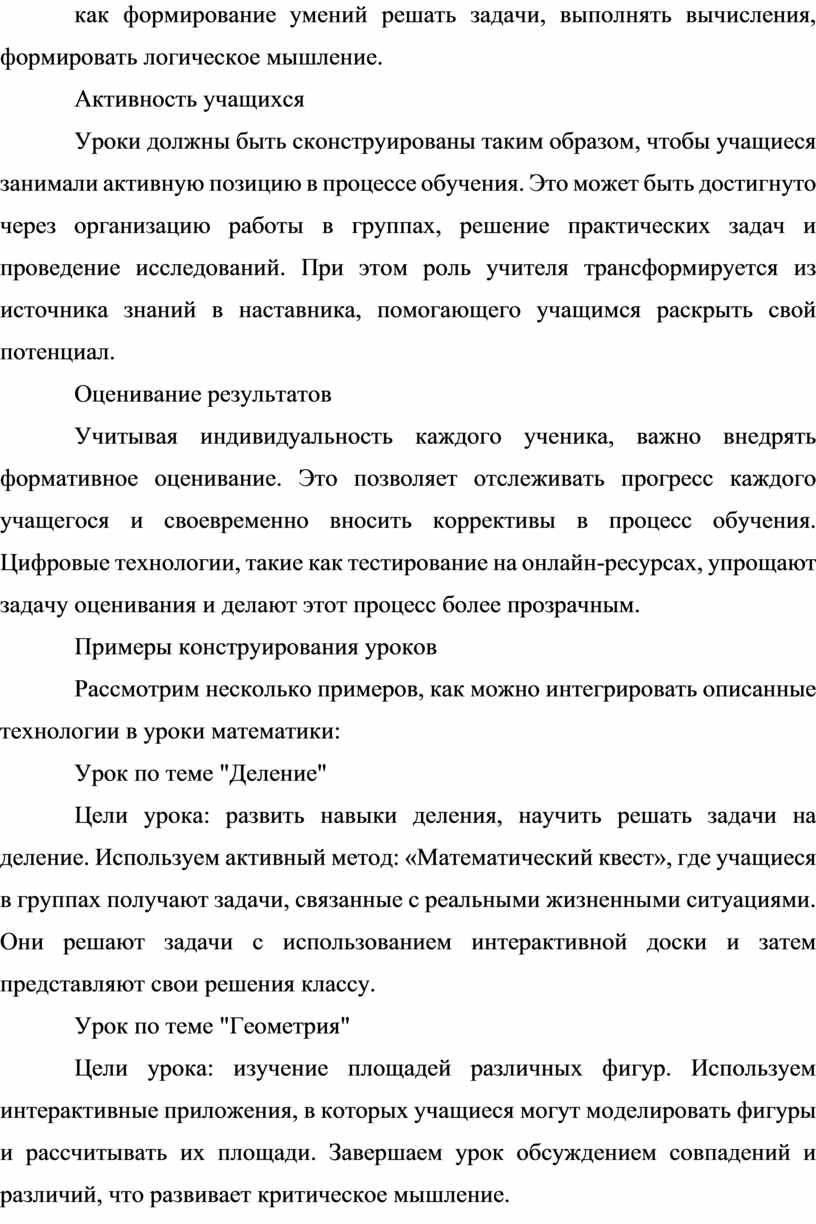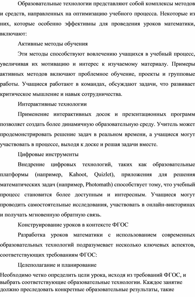 Разработка уроков математики с использованием современных образовательных технологий подразумевает несколько ключевых аспектов, соответствующих требованиям ФГОС: