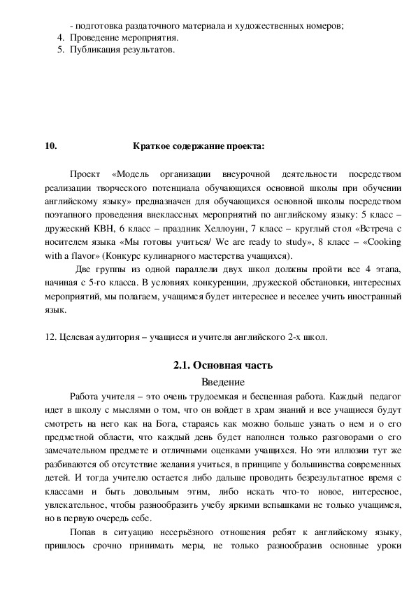 10. Краткое содержание проекта: