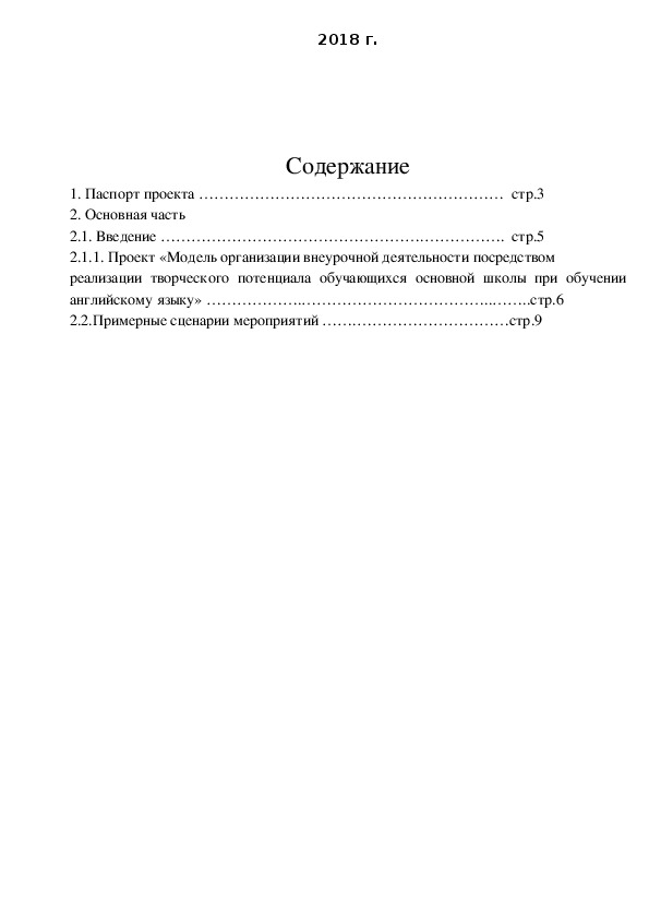 2.2.Примерные сценарии мероприятий …….…………………………стр.91. Паспорт проекта