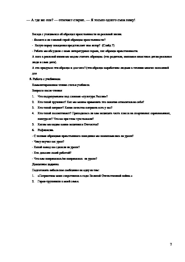Беседа с учащимися об образцах нравственности из реальной жизни.