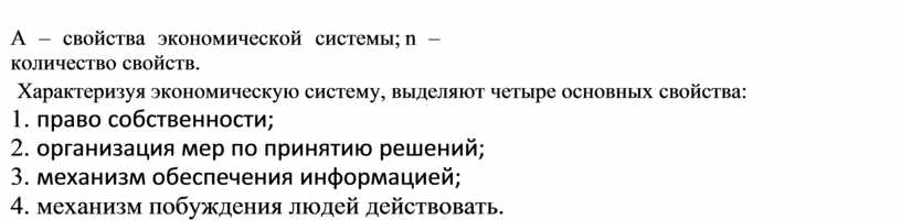 Характеризуя экономическую систему, выделяют четыре основных свойства:
