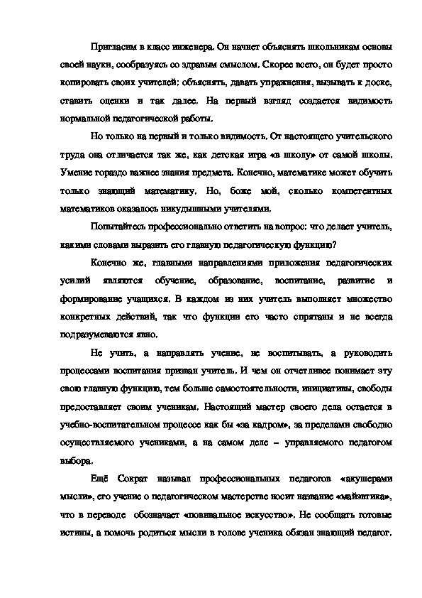 Ещё Сократ называл профессиональных педагогов «акушерами