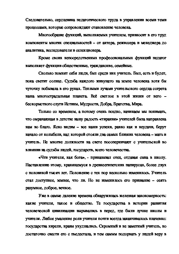 Многообразие функций, выполняемых учителем, привносит в его труд