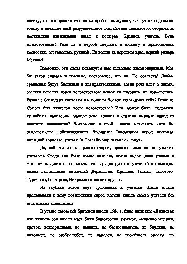 не только идеями, заложенными в знаниях, но и тем, как он несет их в класс. В