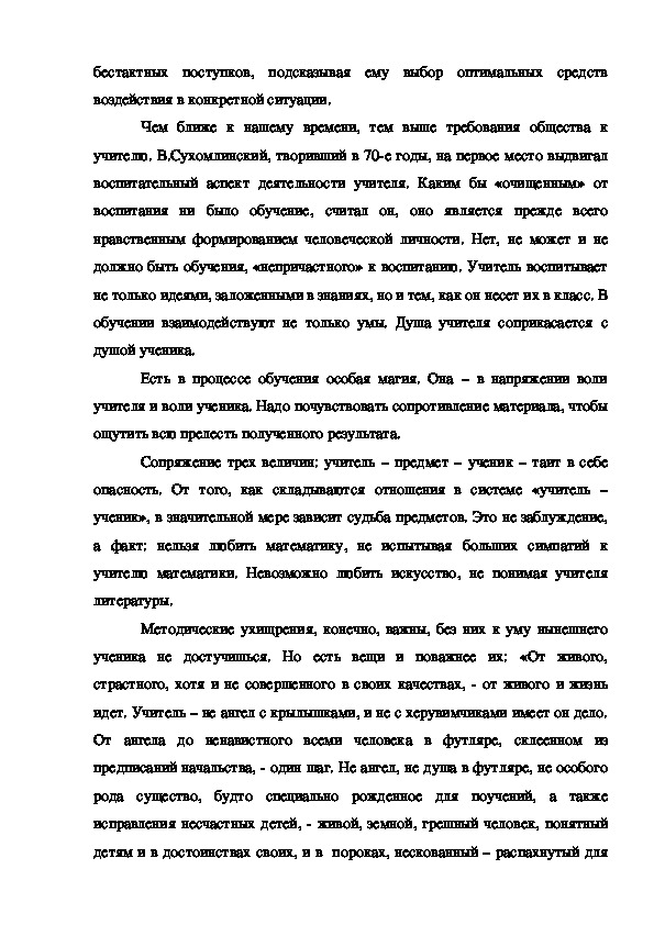 учителю. В.Сухомлинский, творивший в 70е годы, на первое место выдвигал
