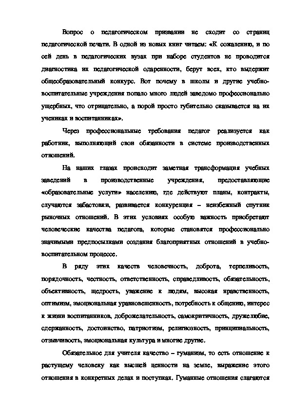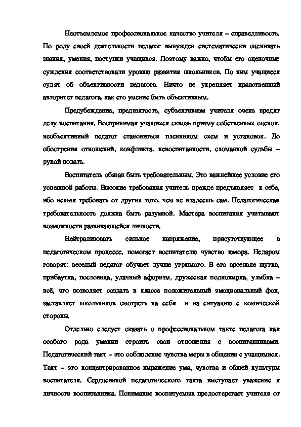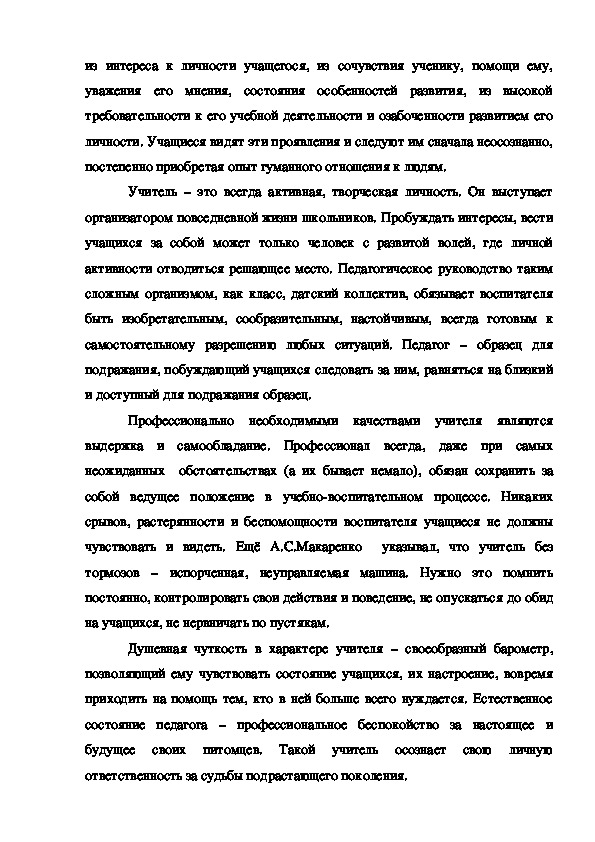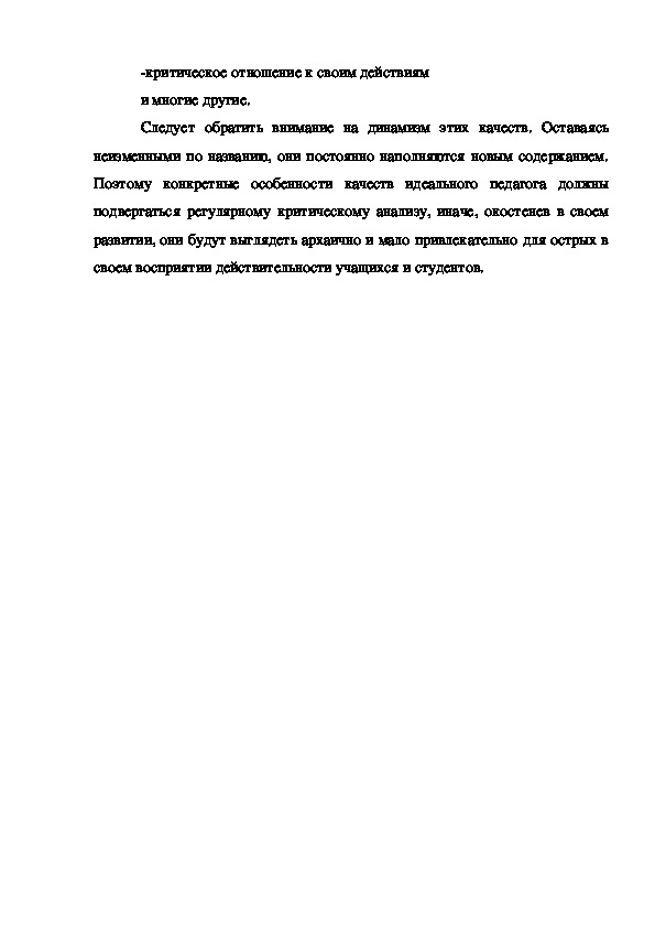 Поэтому конкретные особенности качеств идеального педагога должны
