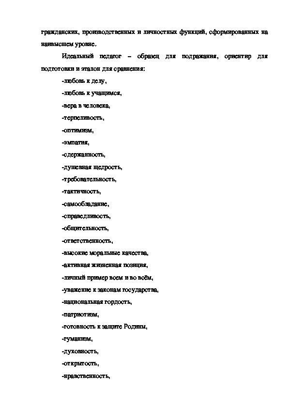 педагог». Идеальный педагог – образец профессионала, носительгражданских, производственных и личностных функций, сформированных на