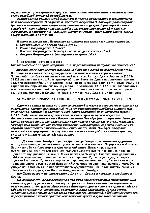 2. Искусство Проторенессанса.