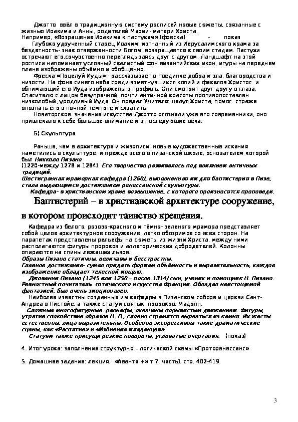 Тема: Общая характеристика искусства эпохи Возрождения. Проторенессанс.