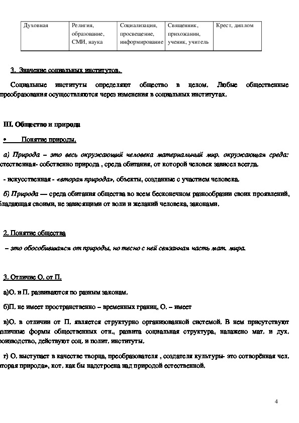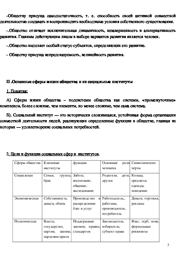 Тема 1. Общество. Системное строение общества. Основные институты общества