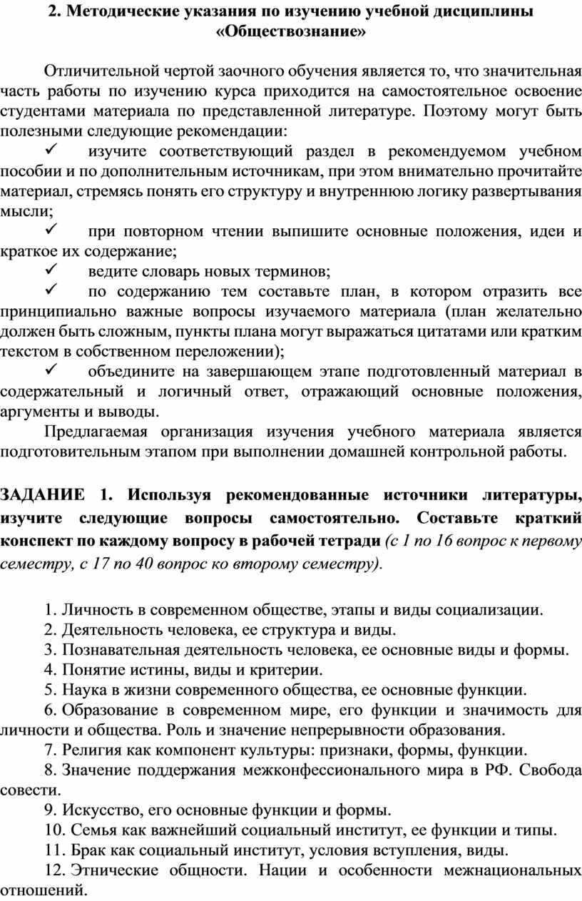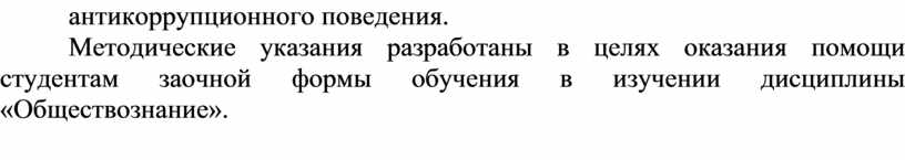 Методические указания разработаны в целях оказания помощи студентам заочной формы обучения в изучении дисциплины «Обществознание».