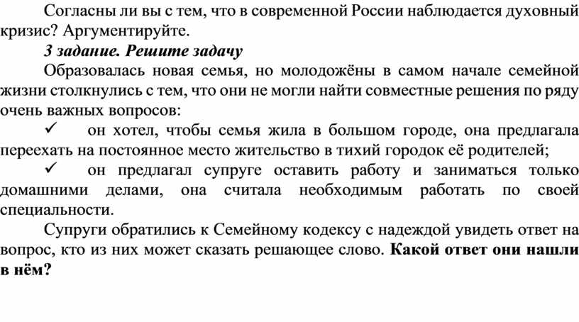 Согласны ли вы с тем, что в современной России наблюдается духовный кризис? Аргументируйте.