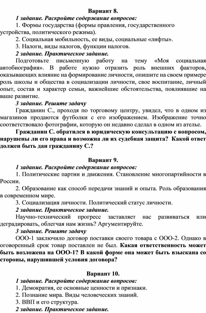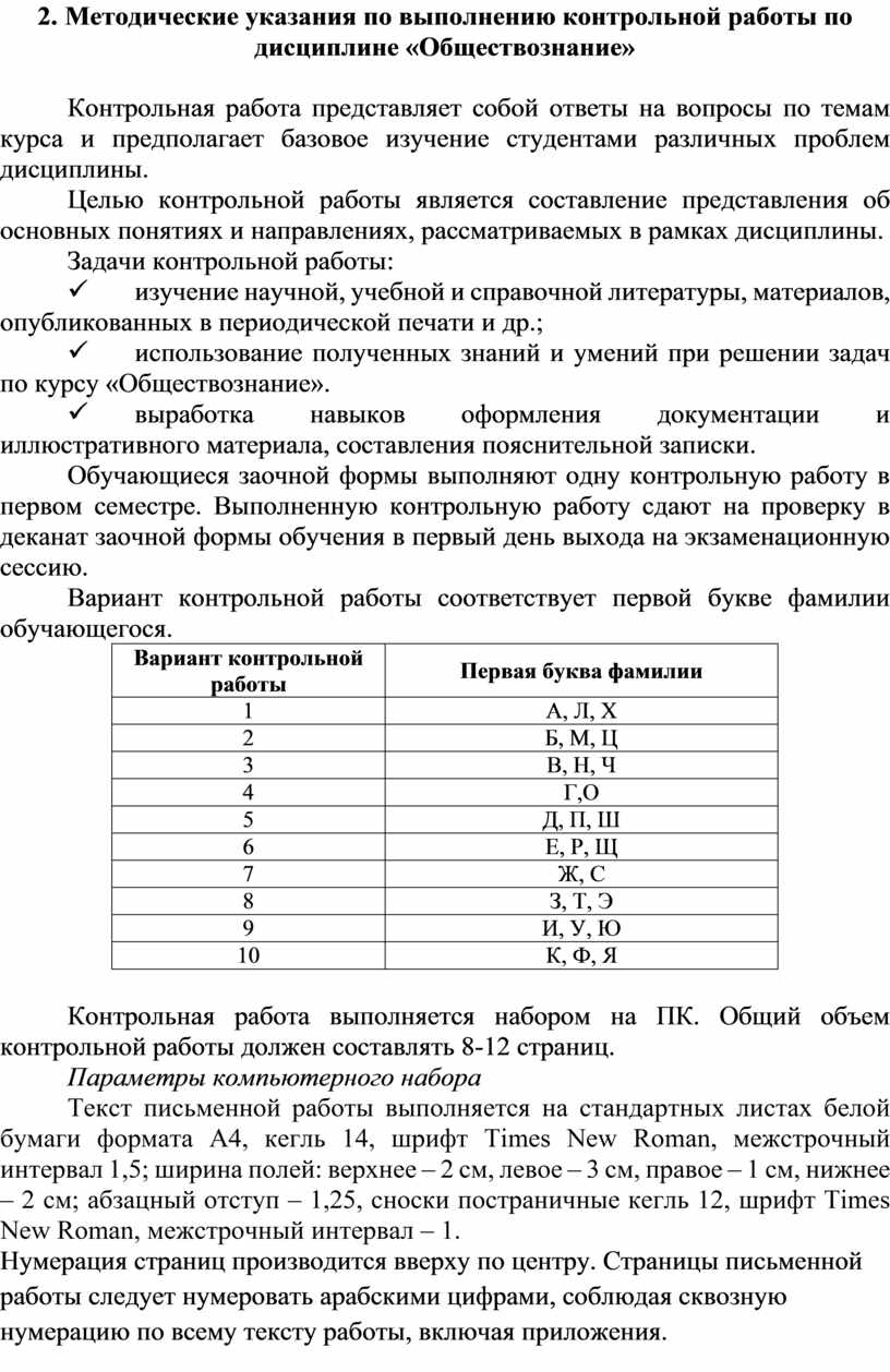 3. Методические указания по выполнению контрольной работы по дисциплине «Обществознание………………………………………….… |