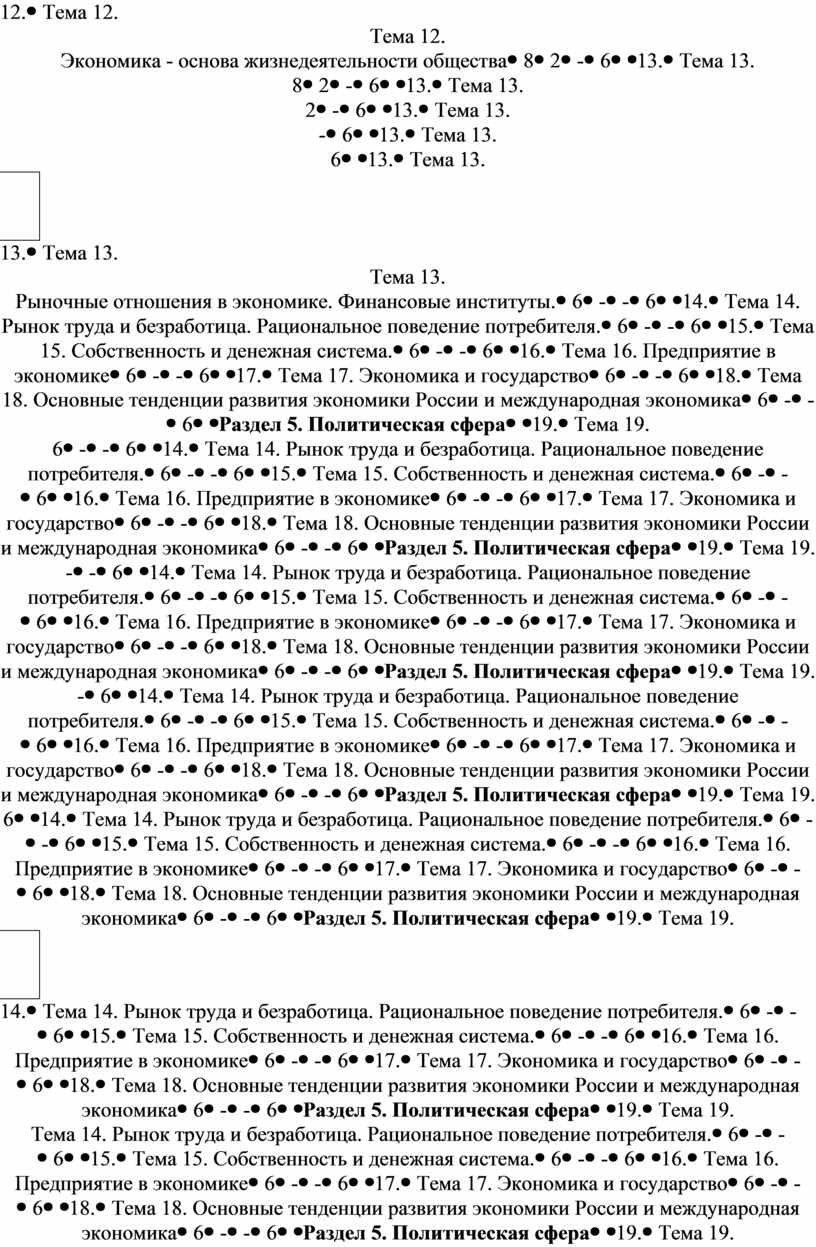Тема 12. Экономика - основа жизнедеятельности общества |