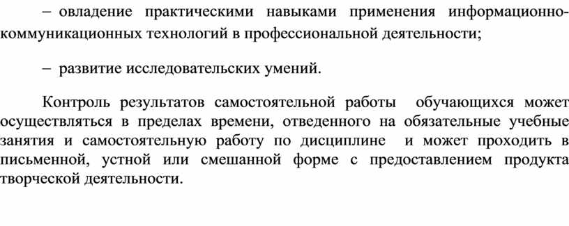 - овладение практическими навыками применения информационно-коммуникационных технологий в профессиональной деятельности;
