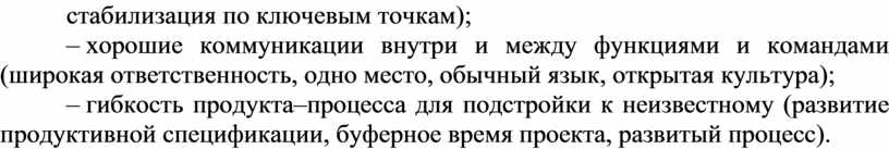 – гибкость продукта–процесса для подстройки к неизвестному (развитие продуктивной спецификации, буферное время проекта, развитый процесс).