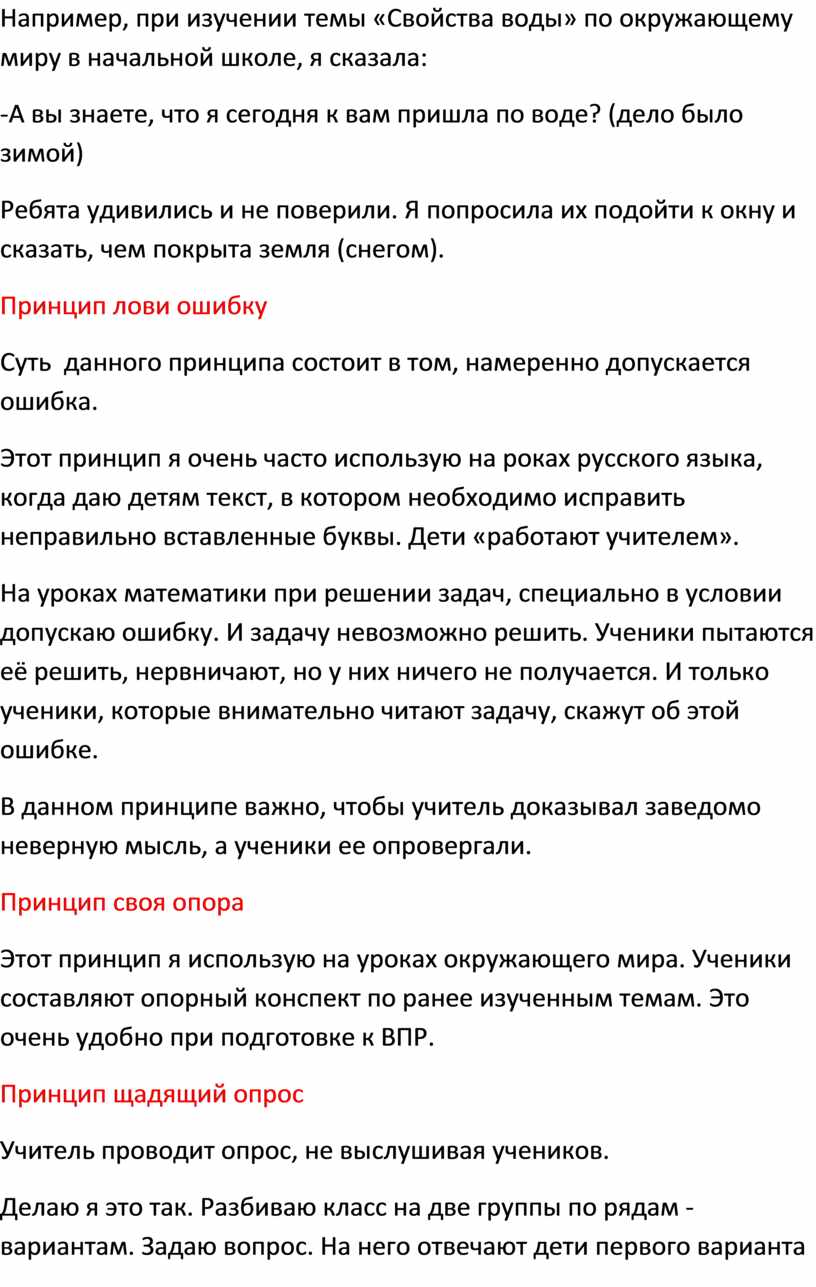 В данном принципе важно, чтобы учитель доказывал заведомо неверную мысль, а ученики ее опровергали.