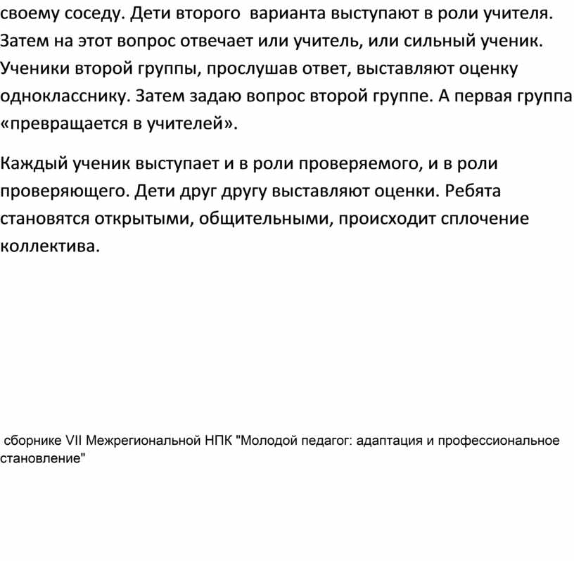 сборнике VII Межрегиональной НПК "Молодой педагог: адаптация и профессиональное становление"
