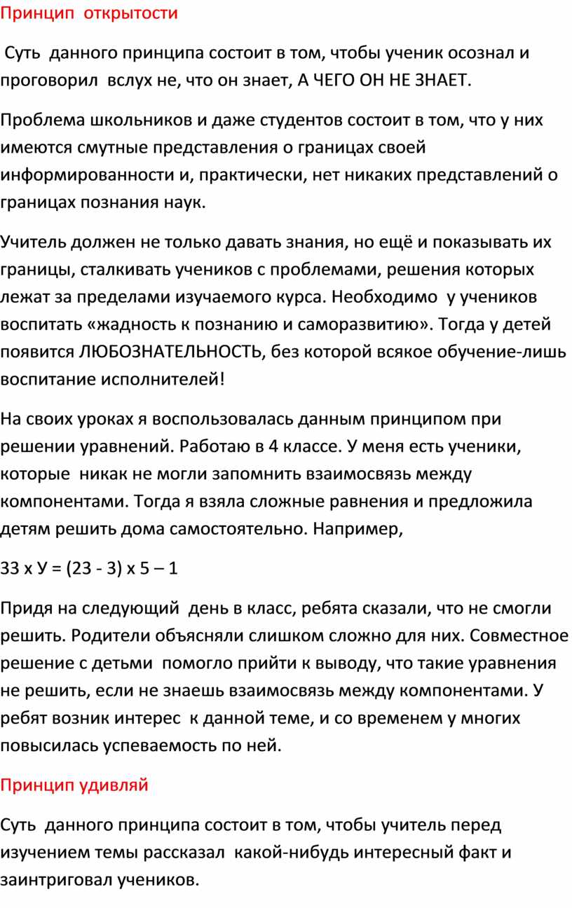 Суть данного принципа состоит в том, чтобы ученик осознал и проговорил вслух не, что он знает, А ЧЕГО ОН НЕ ЗНАЕТ.
