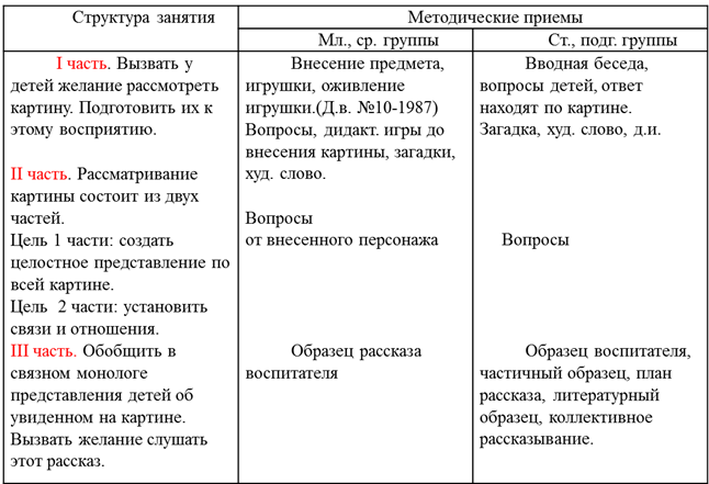 Итак, картина — один из главных атрибутов учебного процесса на этапе дошкольного детства ее положительные преимущества над другими дидактическими средствами достаточно подробно раскрыто в методических пособиях и учебниках по воспитанию (М. М. Конина, Е. П. Короткова, О. И. Радина, Е. И. Тихеева, С. Ф. Руссова и др.).