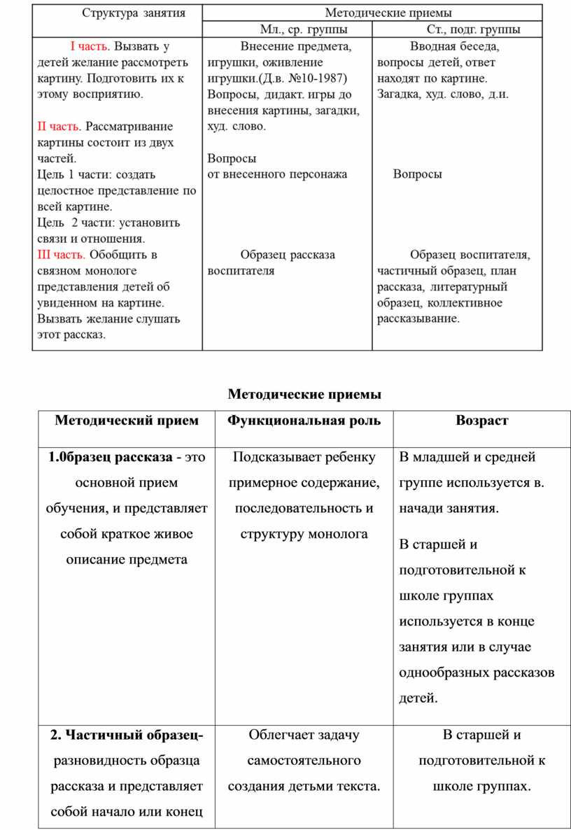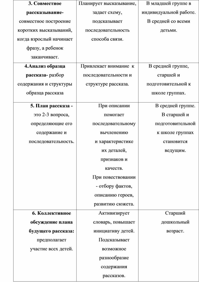 Приемы обучения рассказыванию многообразны, методика их использования зависит от этапа обучения, от уровня умений детей, степени их активности и самостоятельности.