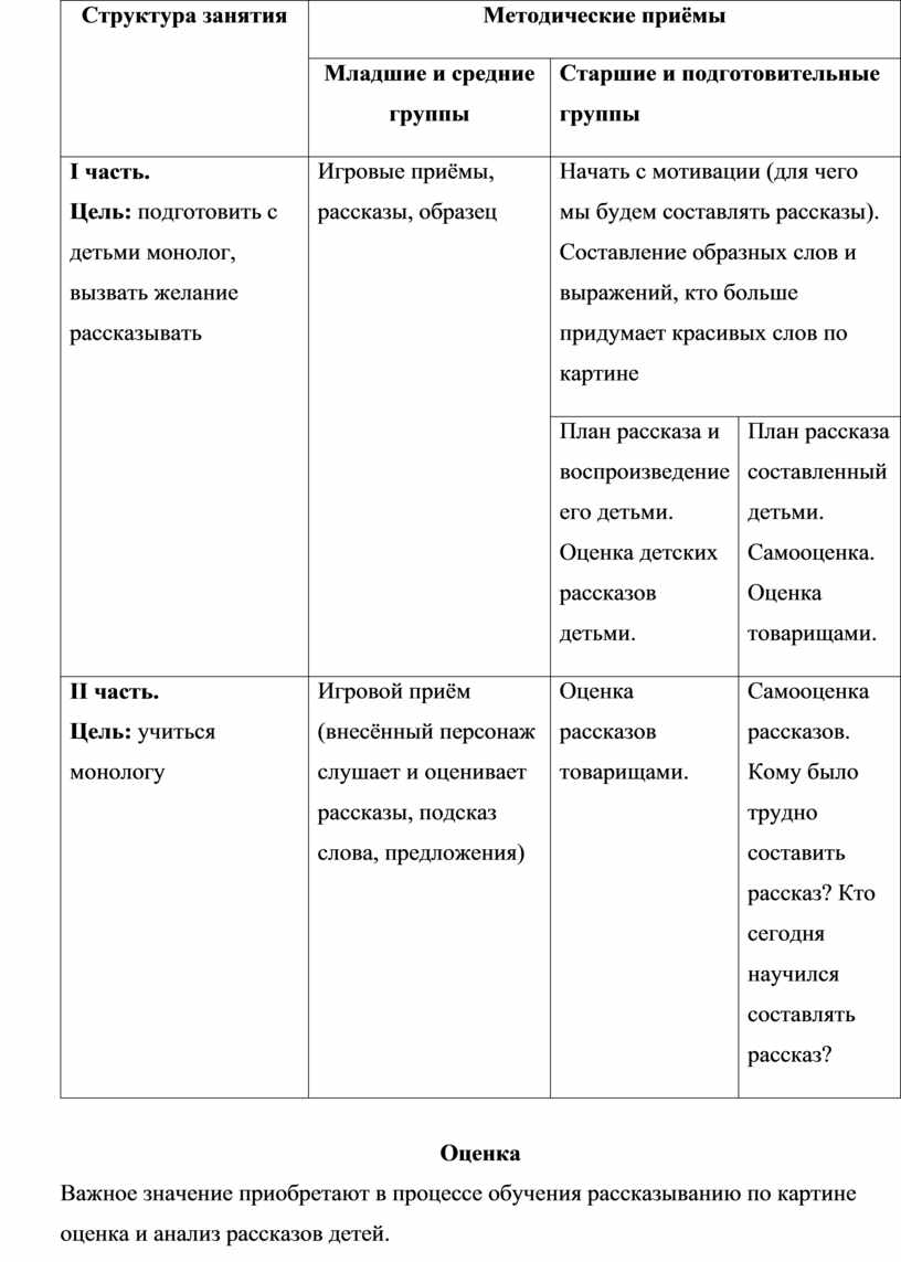 Важное значение приобретают в процессе обучения рассказыванию по картине оценка и анализ рассказов детей.