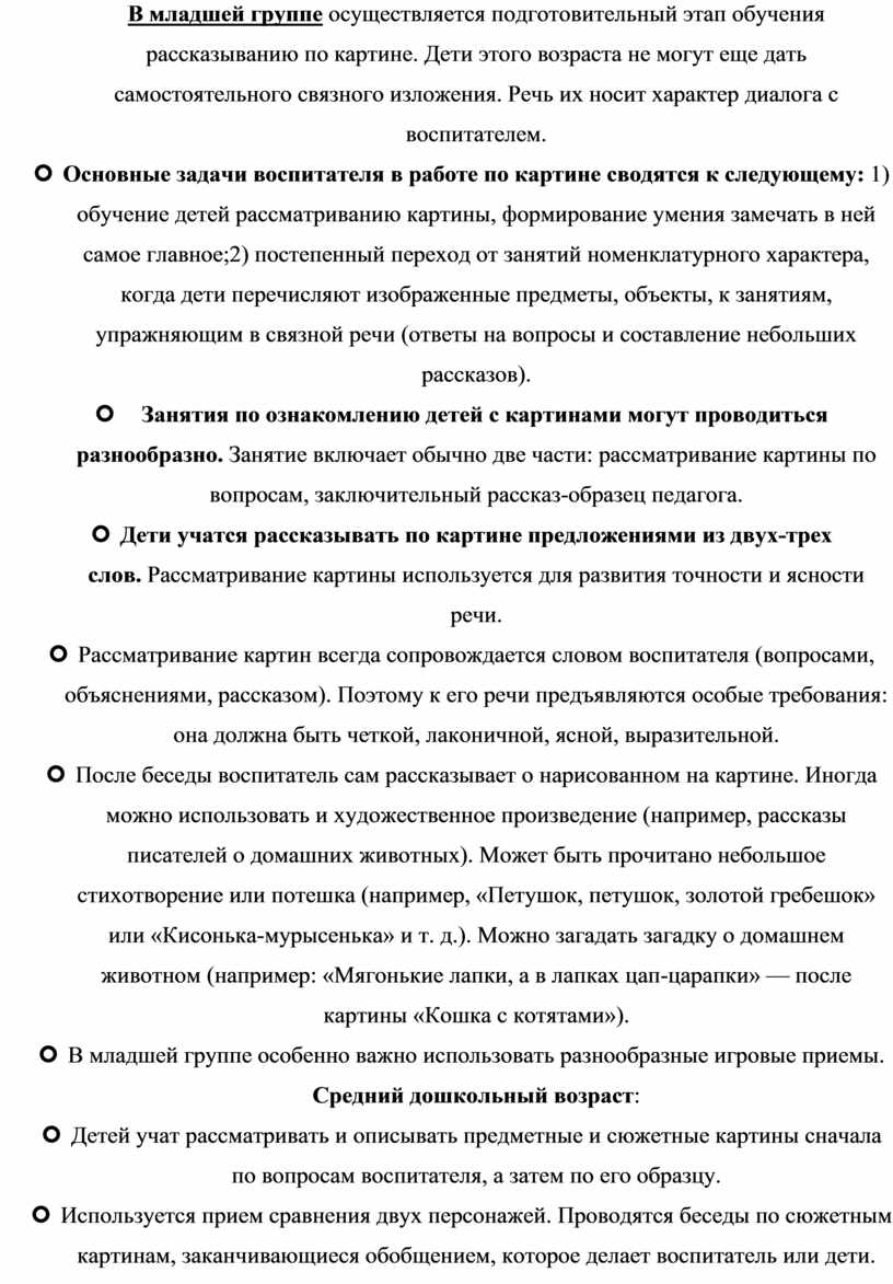 1.Работы по обучению детей рассказыванию по картине рекомендуется проводить, начиная со 2-й младшей группы детского сада.
