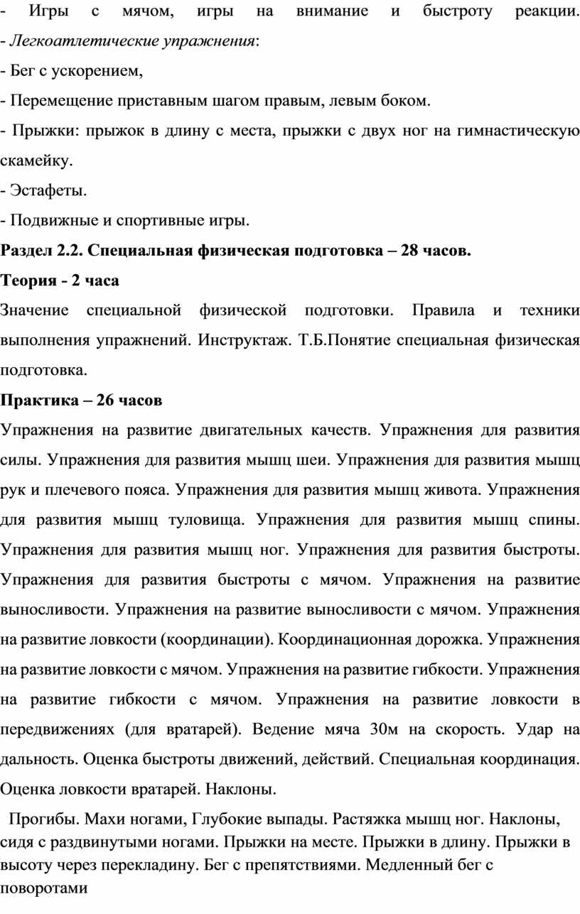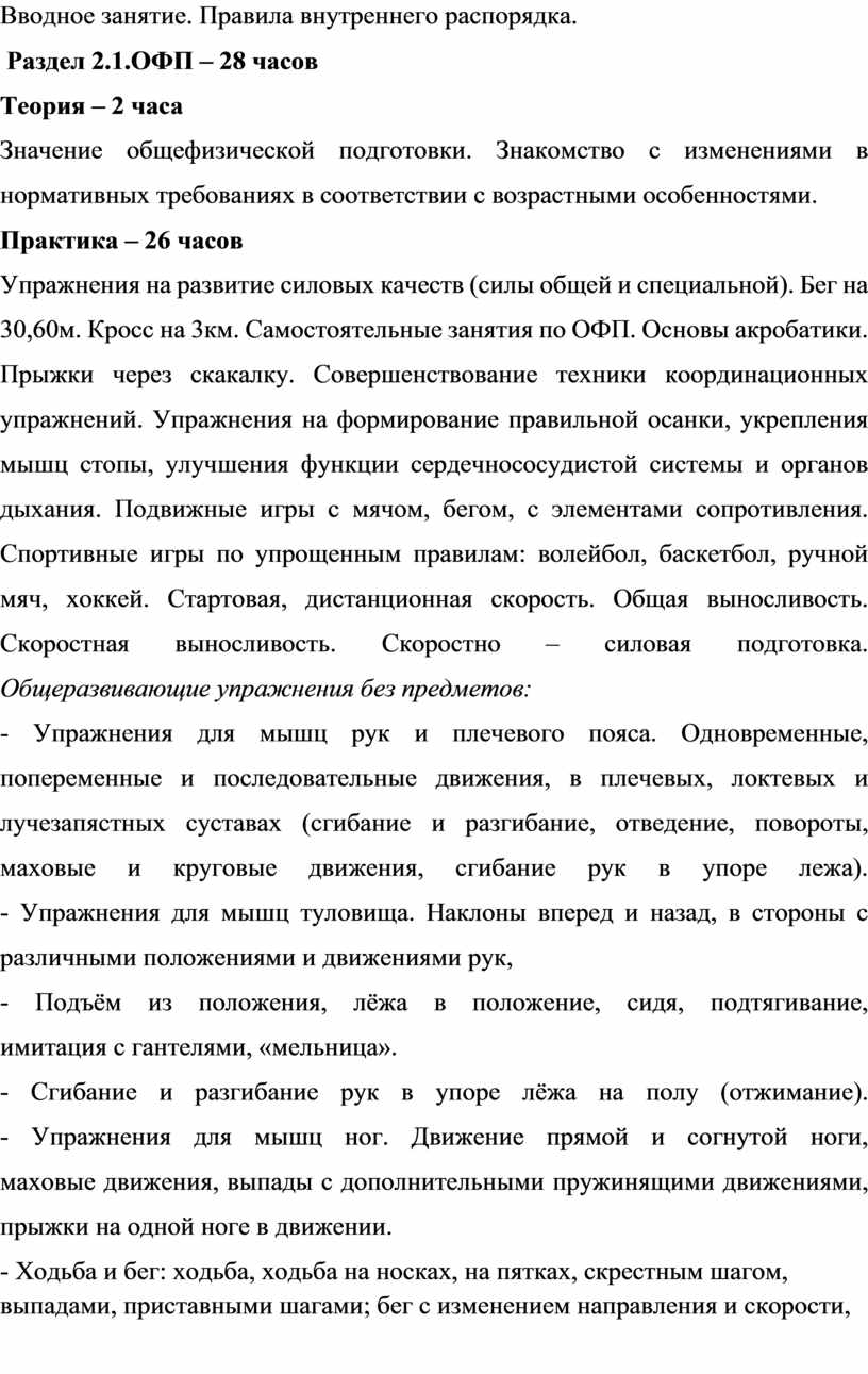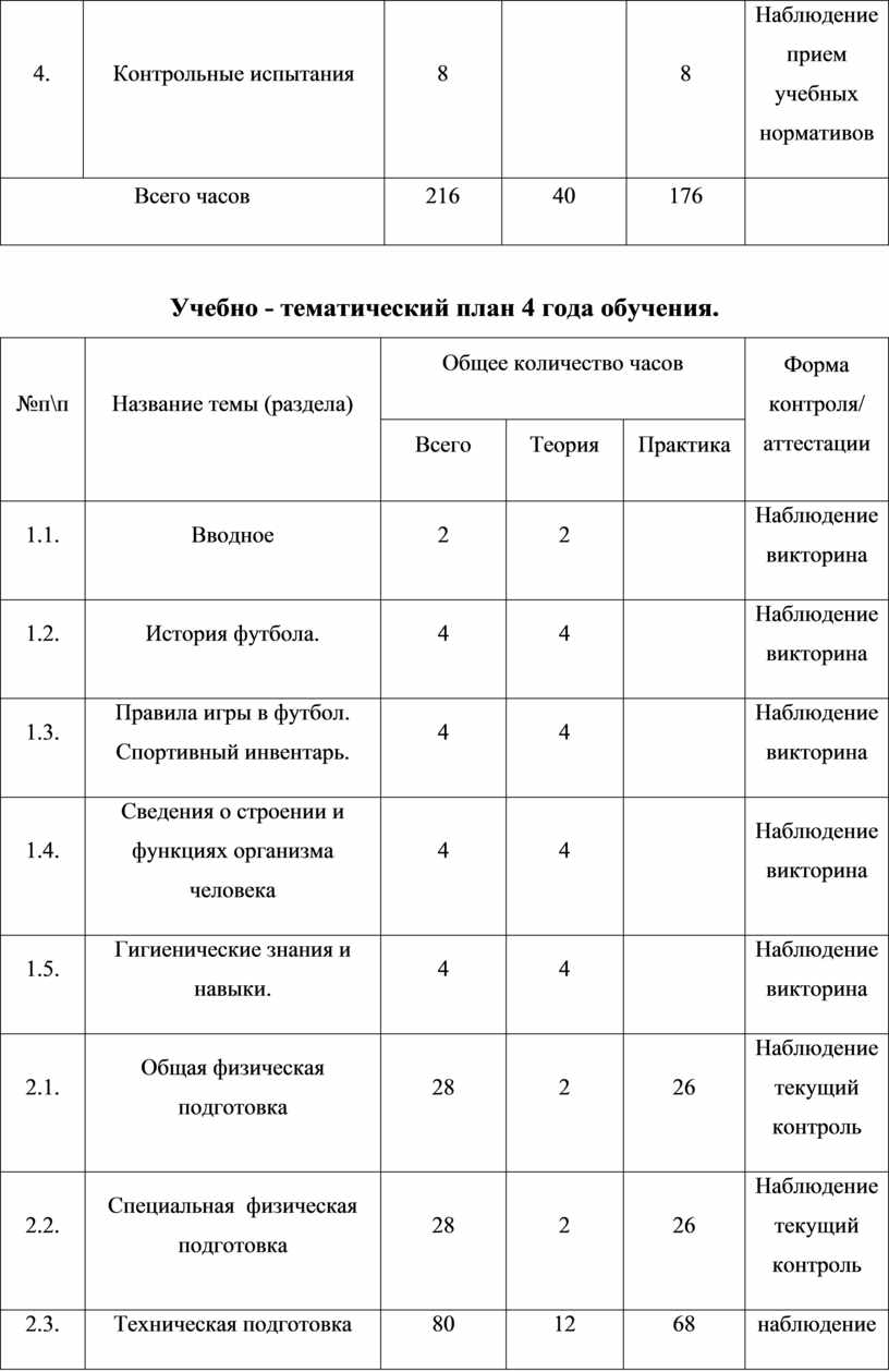 Учебный материал, по общефизической, тактической и технической подготовке, распределен на 5 лет обучения.