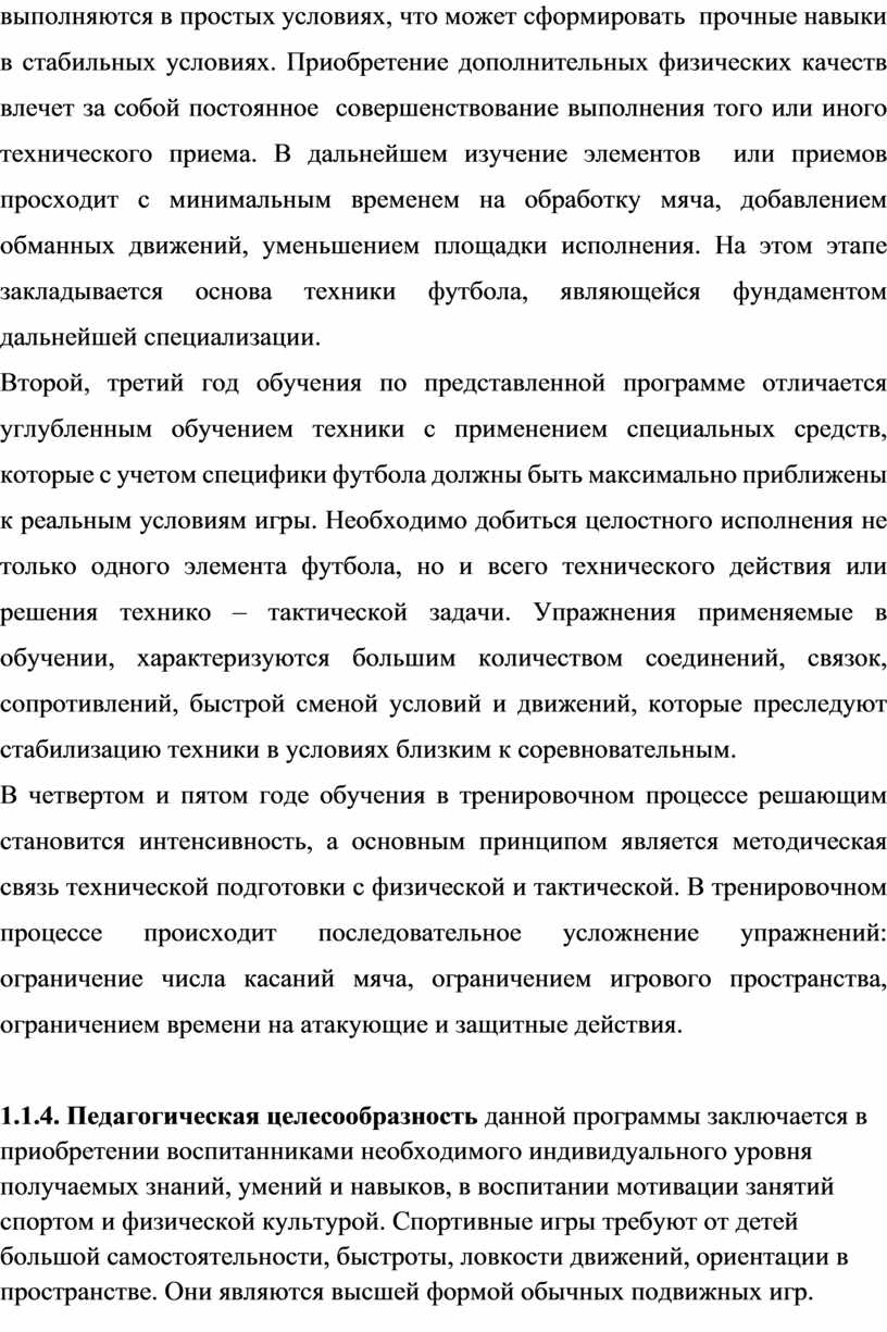 1.1.4. Педагогическая целесообразность данной программы заключается в приобретении воспитанниками необходимого индивидуального уровня получаемых знаний, умений и навыков, в воспитании мотивации занятий спортом и физической культурой. Спортивные игры требуют от детей большой самостоятельности, быстроты, ловкости движений, ориентации в пространстве. Они являются высшей формой обычных подвижных игр. Ребенок в кратчайшие промежутки времени учится видеть создавшуюся обстановку ( расположение партнеров и противника, положение мяча) оценить, выбрать наиболее правильные действия и применить их. Все это направлено на развитие быстроты мышления и быстроты реакции, формирование навыков аналитического мышления, точности двигательных действий. Определенный состав участников, распределение функций, четкая организация игровых условий способствуют формированию навыков работы в команде и командного взаимодействия, саморазвития и самовоспитания детей.