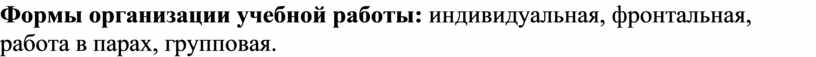 Формы организации учебной работы: индивидуальная, фронтальная, работа в парах, групповая.