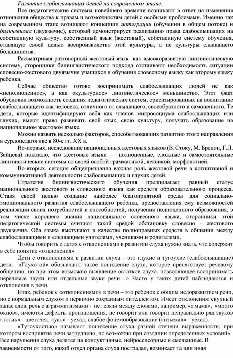 Развитие слабослышащих детей на современном этапе.
