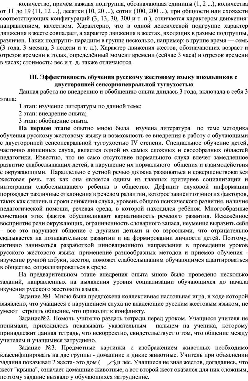 III. Эффективность обучения русскому жестовому языку школьников с двусторонней сенсорноневральной тугоухостью