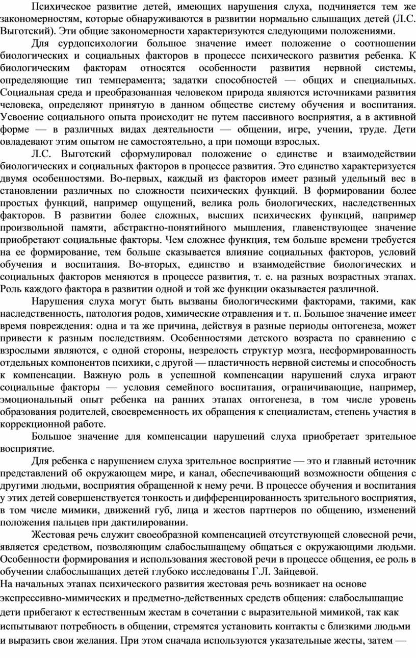 1.3. Роль жестового языка в развитии детей, имеющих нарушения слуха...........................7