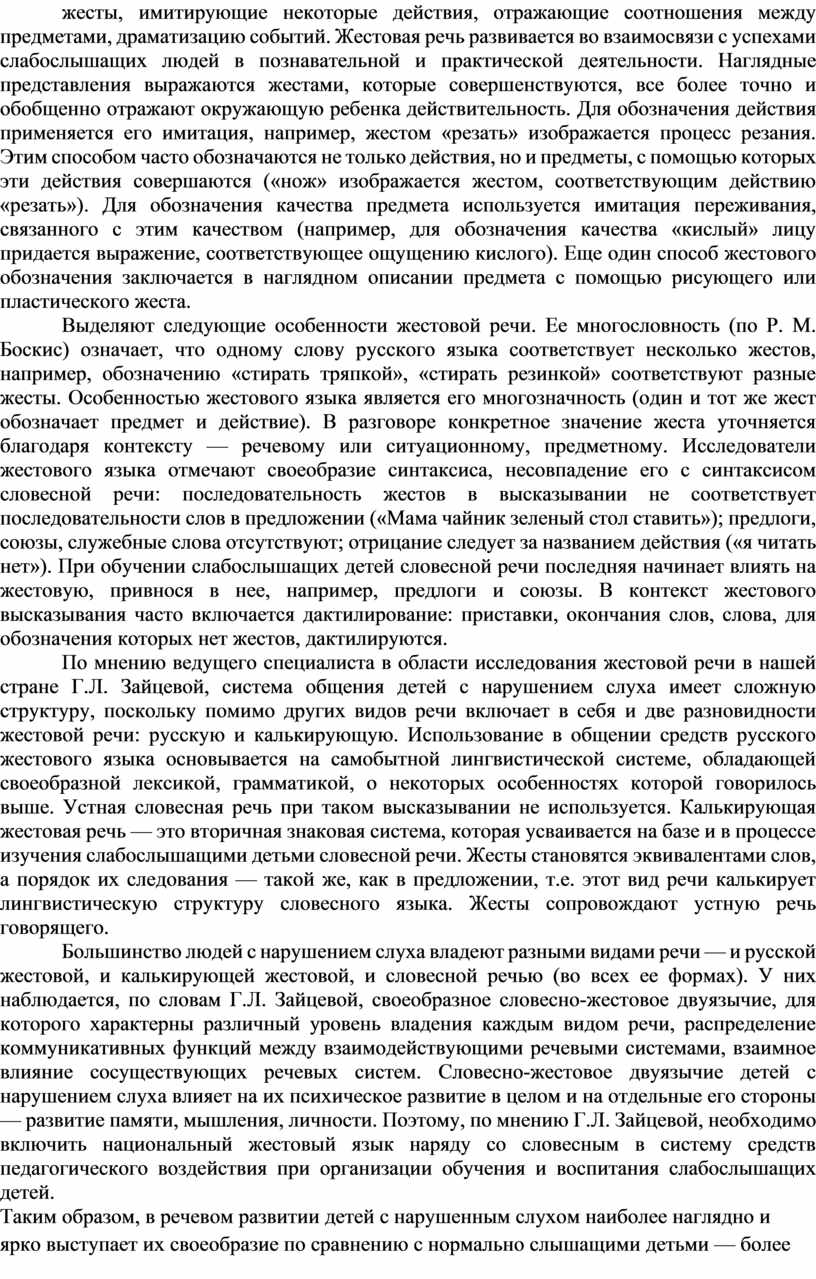 Во-вторых, сегодня общепризнанна важная роль жестовой речи в когнитивной и коммуникативной деятельности слабослышащих и глухих детей.