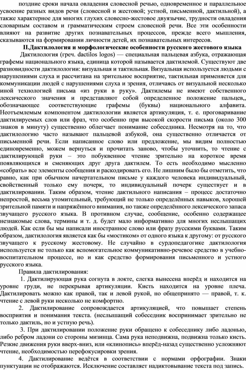 II. Дактилология и морфологические особенности русского жестового языка………….10
