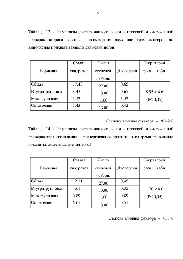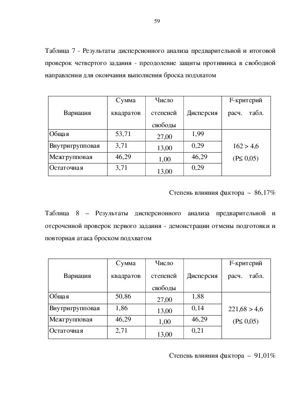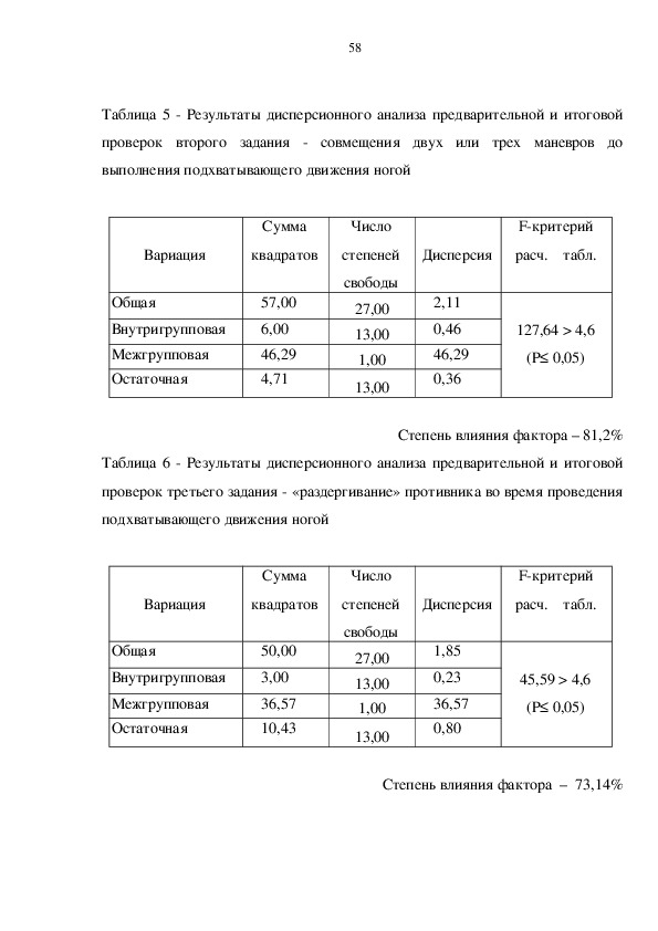 воздействия экспериментальных переменных.