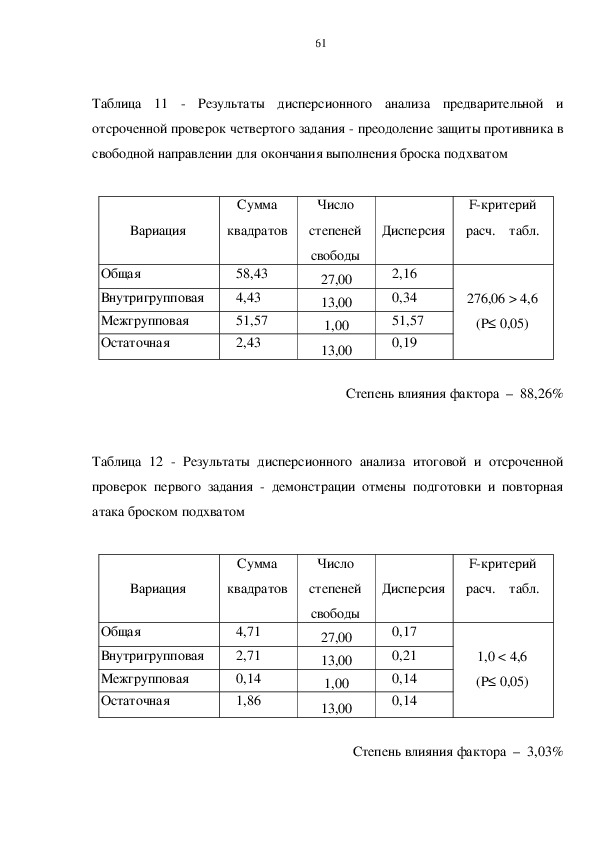 обеспечивающие успешность выполнения броска. При анализе поединков