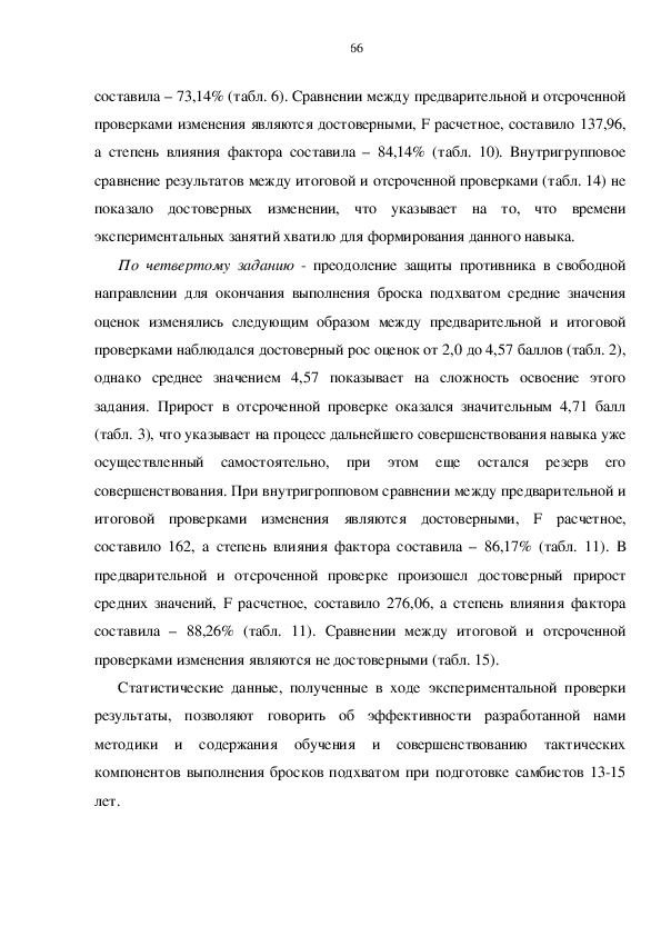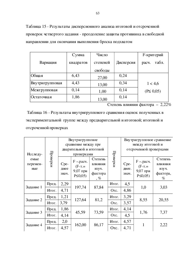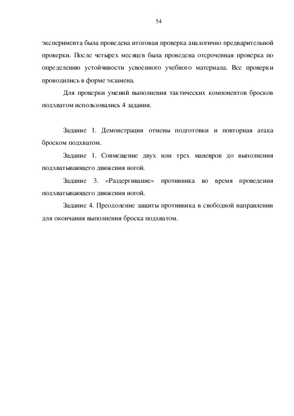 применении бросков подхватом. После окончания эксперимента было