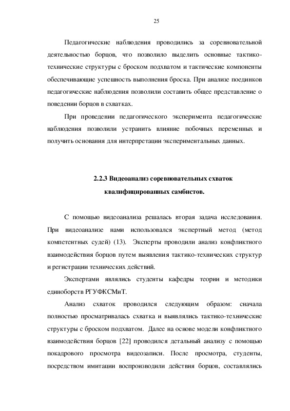 2.2.3 Видеоанализ соревновательных схваток